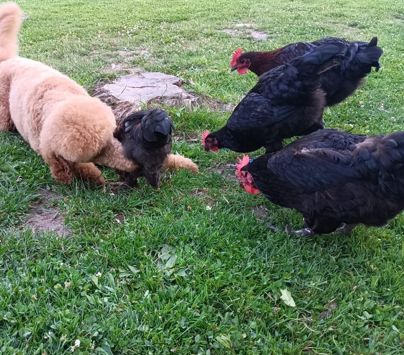 In den ersten Lebenswochen sollten die Welpen vielfältige Kontakte zu anderen Hunden, Katzen, Hühnern und Pferden haben. Diese Erfahrungen helfen ihnen, positive Verhaltensweisen zu entwickeln und Angst vor unbekannten Tieren abzubauen.
